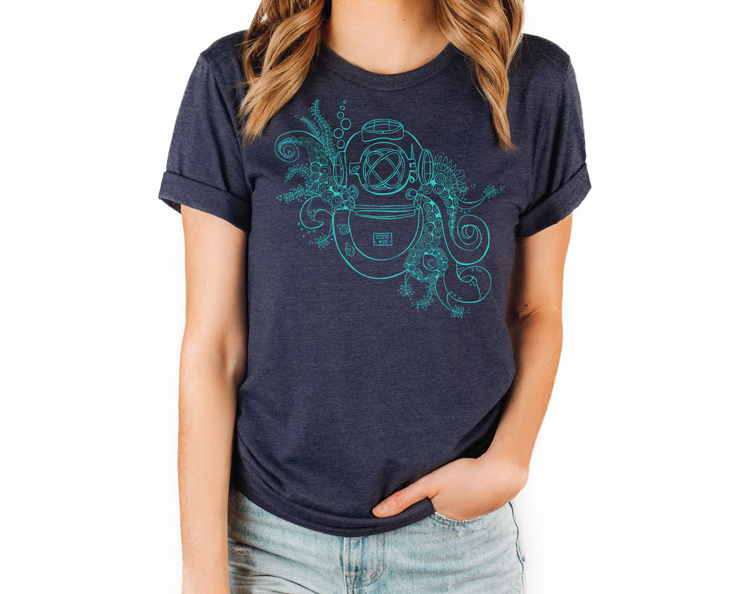 Take a deep dive into the ocean’s mysteries with this hand-drawn design featuring a vintage dive helmet, winding octopus tentacles, and swirling seaweed. Inspired by the spirit of underwater exploration, this tee channels the adventurous feeling of being fully immersed in the ocean’s depths. Whether you’re an ocean explorer, a lover of vintage dive gear, or just someone who feels a deep connection to the sea, this design is a tribute to the timeless allure of underwater adventure. Printed on an eco-friendly shirt, this design celebrates both the beauty and the mystery of the deep blue, making it the perfect piece for anyone who dreams of exploring the world beneath the waves.