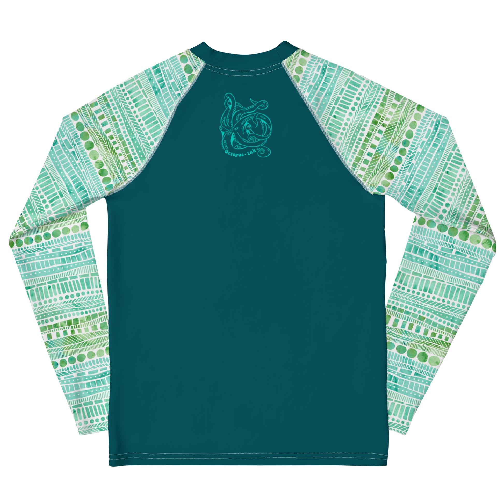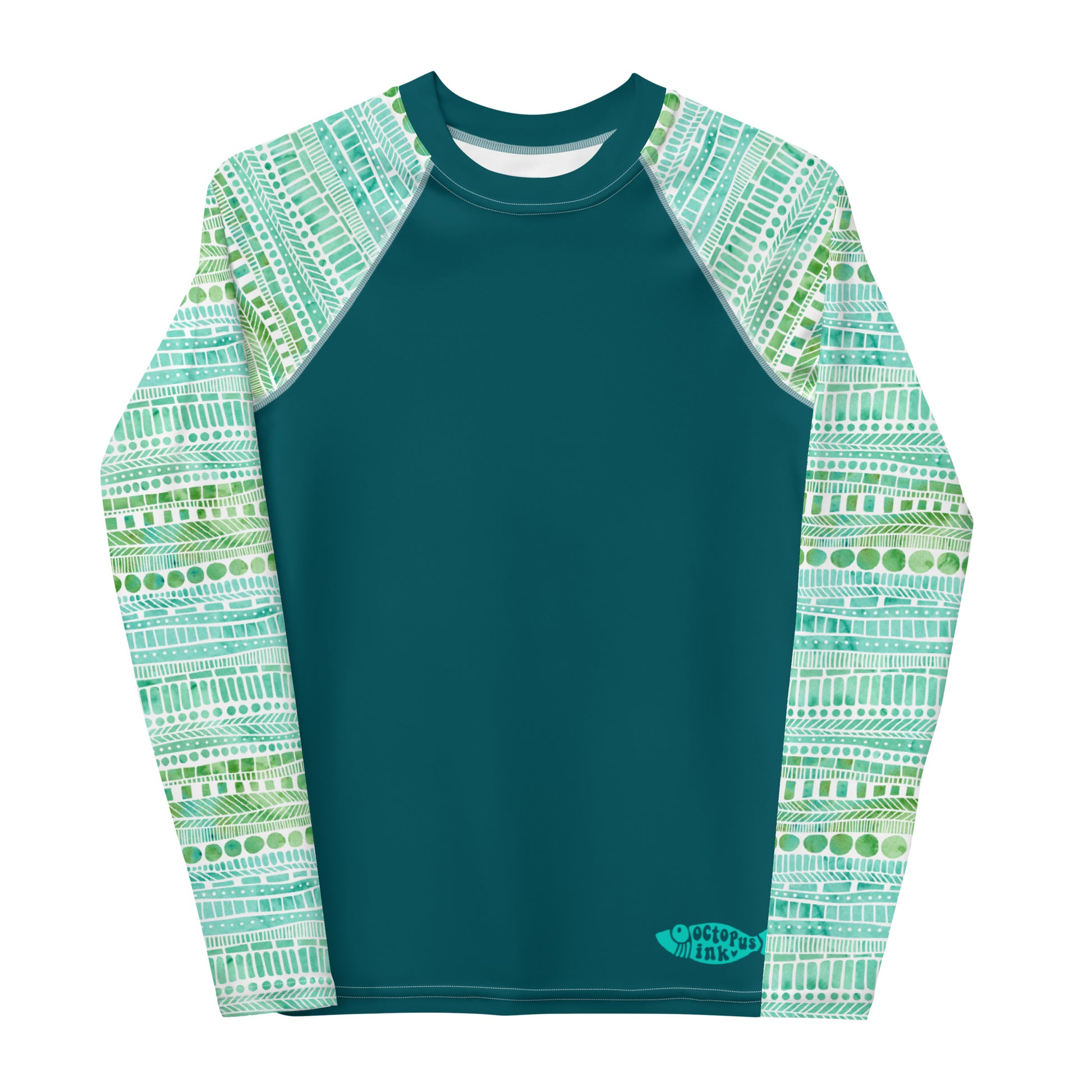 Looking for the perfect rash guard that can keep up with your adventurous teen? Look no further! Our Octopus Ink rash guard has everything you need to keep your teen protected and comfortable during all their aquatic adventures. Not only does it provide superior sun protection with its UPF 50+ fabric, but it's also made from a buttery soft, quick-drying material that won't rub or chafe. Whether they are learning to catch their first wave or exploring the reef in search of their new favorite fish, this Octopus Ink rash guard is sure to be a fast favorite.